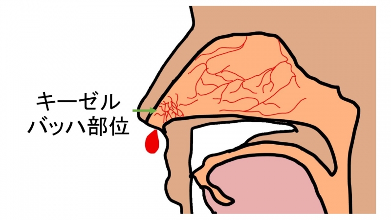 全ての部位の疾患を見る みみの疾患 はなの疾患 のどの疾患 鼻出血 症状鼻出血(鼻血)のほとんどは鼻中隔(鼻の真ん中のしきい)の手前の部分にあるキーゼルバッハ部と呼ばれる毛細血管の集まった部分を鼻さわりや鼻かみ等の刺激することによって起こします。そのため通常は鼻の小鼻の部分を両側からつまみ、下を向くと数分で止まります。頻繁な出血で生活に支障があれば、電気凝固、レーザー蒸散などを行います。 また、まれに鼻・副鼻腔の腫瘍、上咽頭腫瘍からの出血の場合もあり、反復する場合は鼻内ファイバーやレントゲンで腫瘍性病変がないことを確認する必要があります。 前のページへ